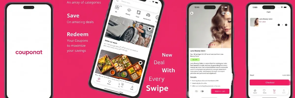 Couponat is a Kuwait-based mobile platform providing exclusive discount coupons for a variety of sectors including restaurants and salons. Users can purchase vouchers through the app and redeem them directly with vendors to save on their total bill.